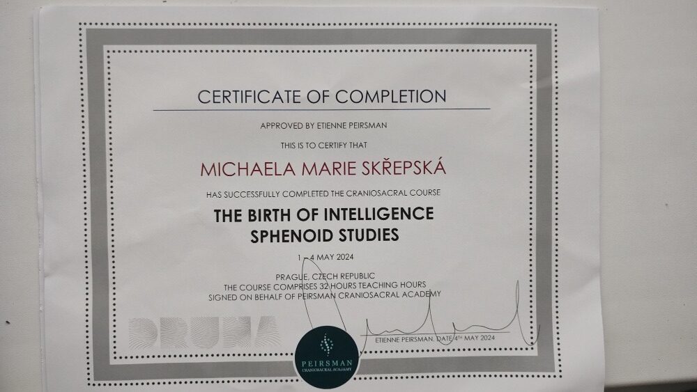 – ošetření v oblasti lebky, mozku, klínové kosti (sfenoidu) – rozpohybování lebečních švů, životních změn a Dechu Života, rozpouštění toxinů, práce s kmenovými buňkami, nervovým systémem a s poplašnými systémy
